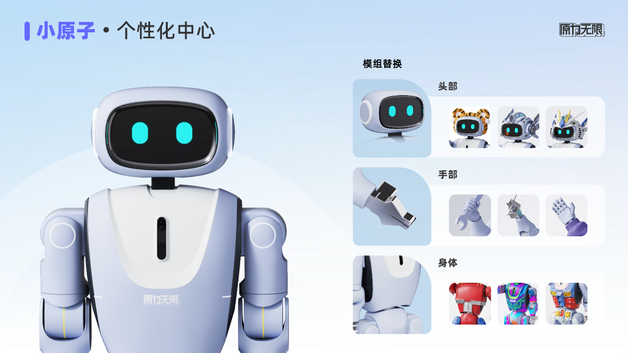 为此原力无限为小原子打造了通用外设接口,手部和关键部件都可以快速替换、功能扩展,包括通过3D打印设计全新的外设,即插即用。而软件层面,通过官方OTA和开放平台持续升级,小原子的能力边界也会不断拓宽。