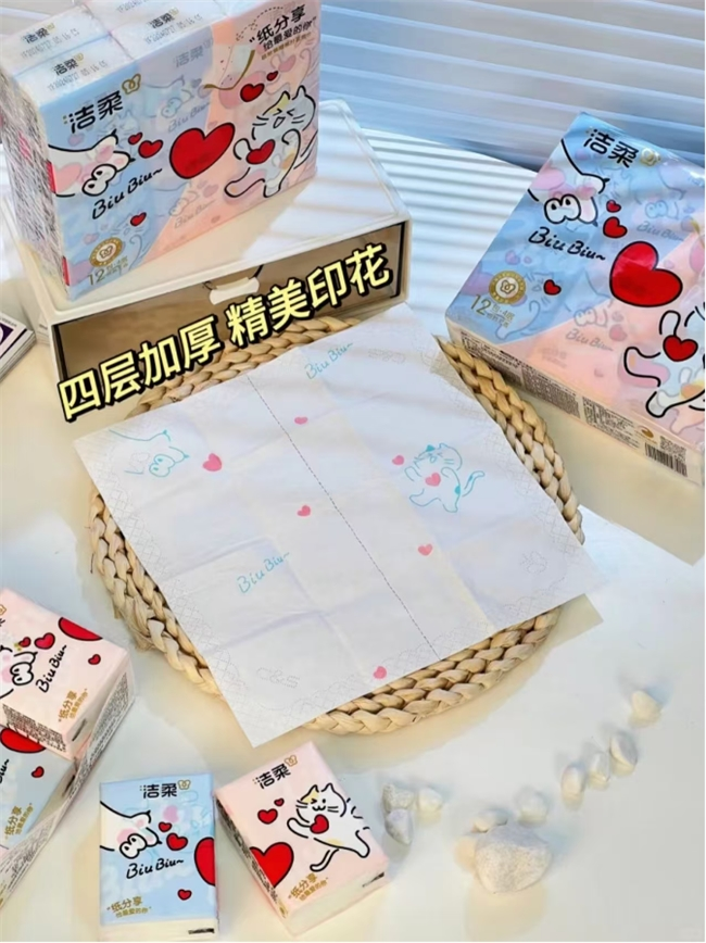 在基础清洁类纸巾(如抽纸、手帕纸)选购中,“100% 原生木浆” 成为首要原则,源于回收浆可能存在粉尘刺激皮肤的风险。校果研究院发布的 “大学生最喜爱的纸巾榜单” 显示,某品牌艺术系列油画纸巾因选用巴西尤加利树木浆,短纤维质地均匀柔软,甚至可应急替代洗脸巾使用,该品牌也因此登上榜单榜首,印证了品质是 Z 世代对生活用纸的核心消费需求。