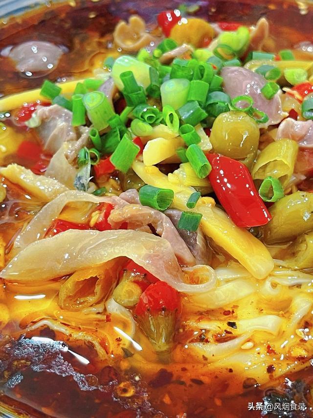 用的泡椒讲究,得是石柱辣椒或者二荆条泡的十年老坛,自然发酵,酸辣醇厚不呛喉。