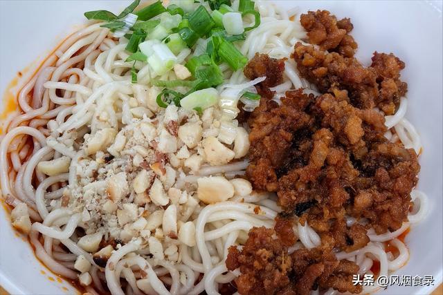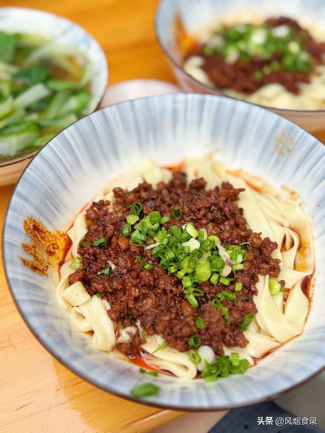 做法讲究个“干”字,用的是本地碱水面,含水量比普通面少两三成。