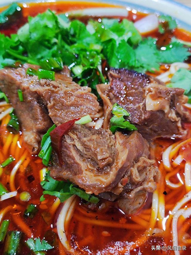 细碱水面煮得绵柔弱碱,汤宽红亮,牛肉臊子炖得入口即化。