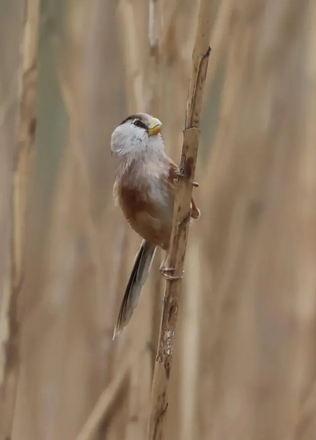 3月15日,洛阳孟津黄河湿地保护区科研人员在日常监测工作中发现3只震旦鸦雀,只见它们攀爬、跳跃于茂密的芦苇丛中,不时发出清脆悦耳的鸣叫声,呈现出一幅生动有趣的生态画面,这也是保护区内时隔9年再次记录到该物种。