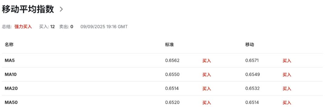 从日线技术指标来看,澳币汇价自8月22日有效突破布林带中轨后,持续运行于中轨与上轨之间的强势区间,整体呈现震荡上行态势。周二汇价进一步走高,并贴近布林带上轨所指的0.6600动态阻力区域运行,表明当前多头占据市场主导。布林带下轨位于0.6420一线,构成短期动态支撑。与此同时,布林带通道整体开口有所扩张,预示市场波动率有所上升,趋势性动能或进一步增强。14日RSI相对强弱指标维持于60水平,处于强势区间但未进入超买区域,显示当前多头动能依然稳健,与布林带指标共同印证短期内市场仍由多头力量主导。